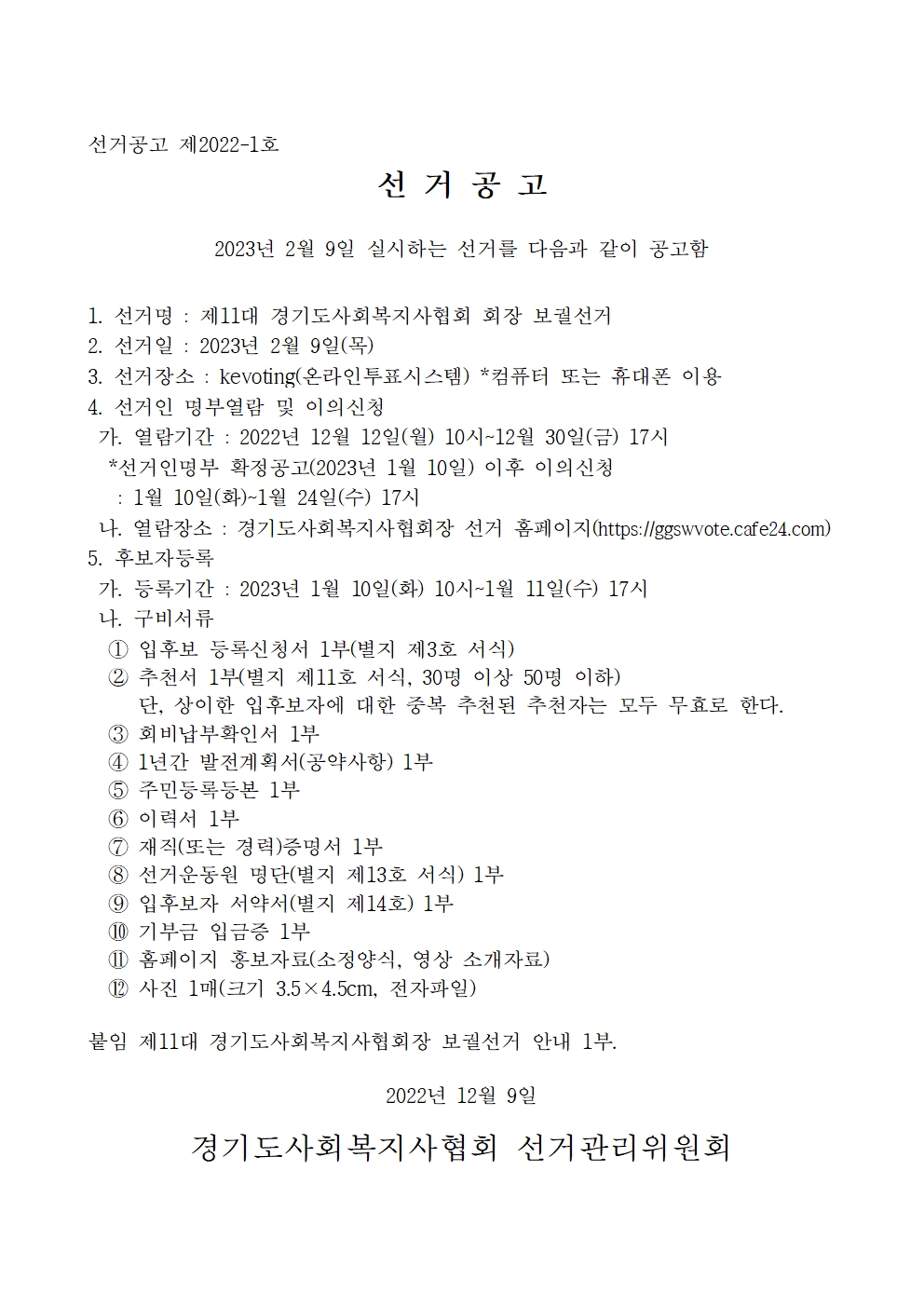 제11대 경기도사회복지사협회 회장 보궐선거 공고