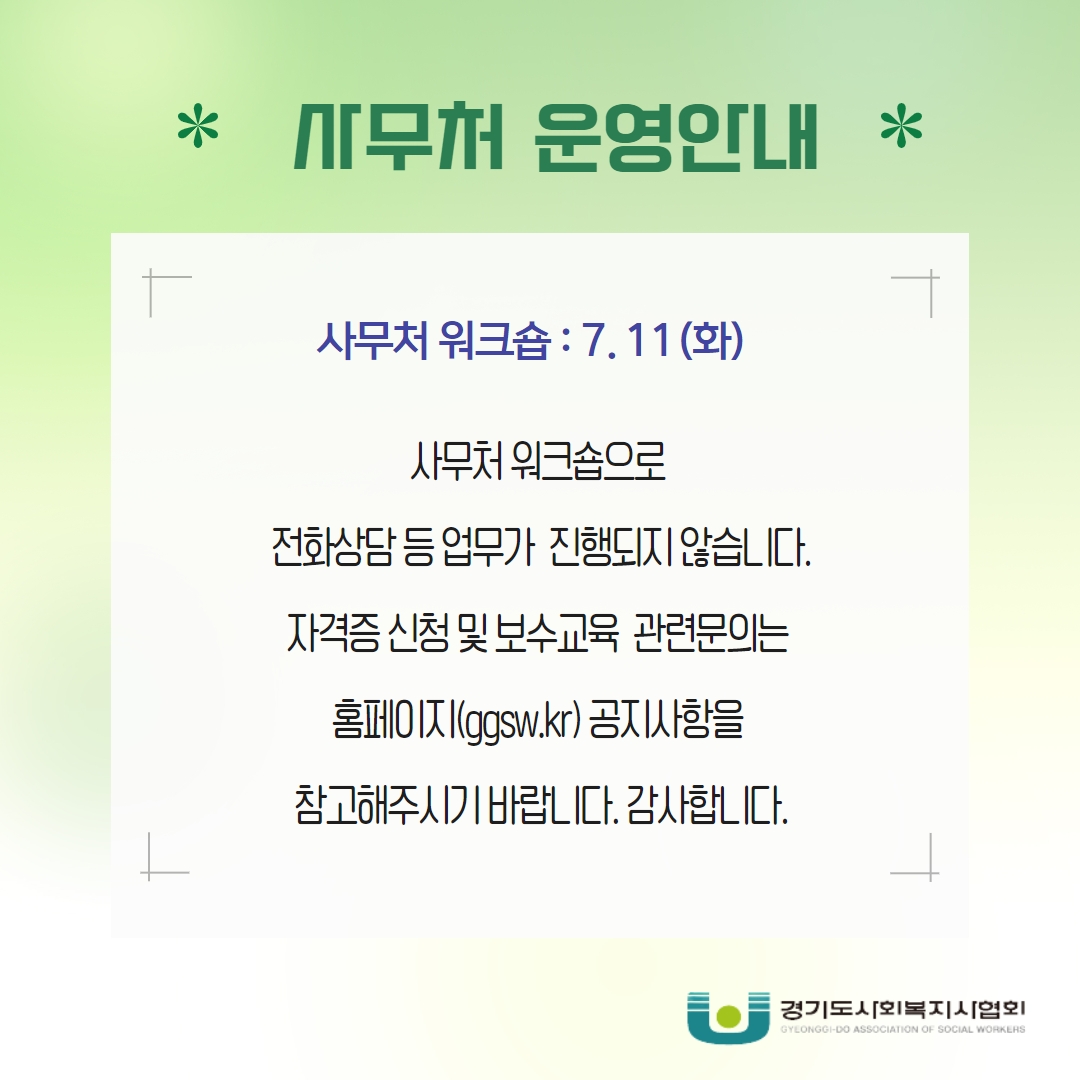 사무처 워크숍으로 협회업무가 진행되지 않습니다.