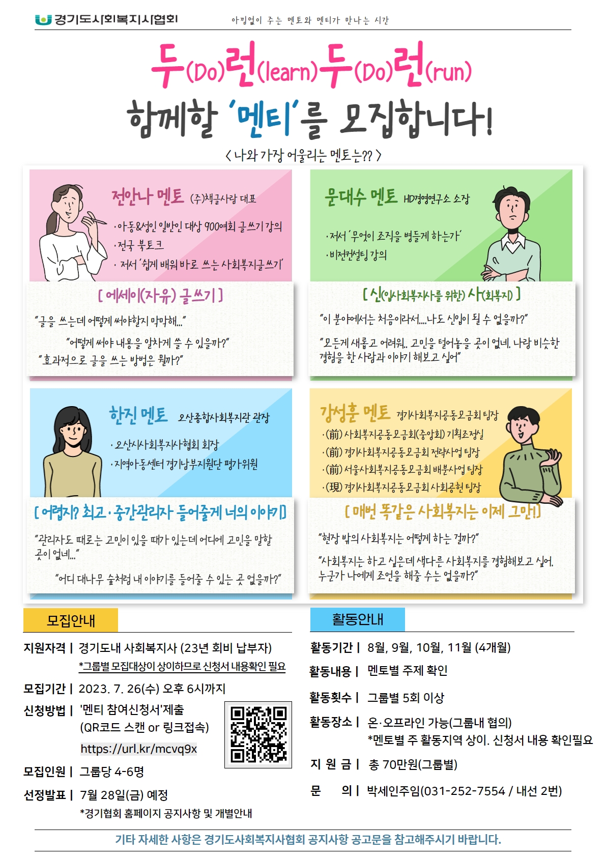 붙임 1. 2023년 경기도사회복지사협회 멘토링사업「두런두런(Do learn, Do run)」 멘티 모집 1부