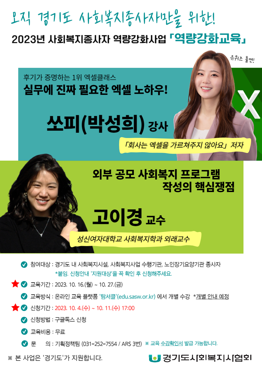 조기마감) 2023년 경기도 사회복지종사자 역량강화사업 [역량강화교육] 녹화 교육 신청 추가모집