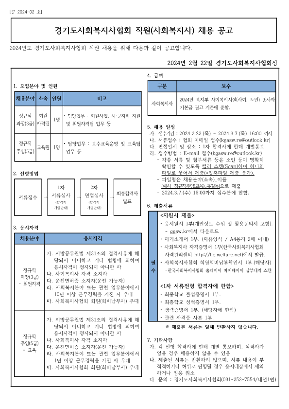 [채용] 공2024-2호 경기도사회복지사협회 직원 채용 공고