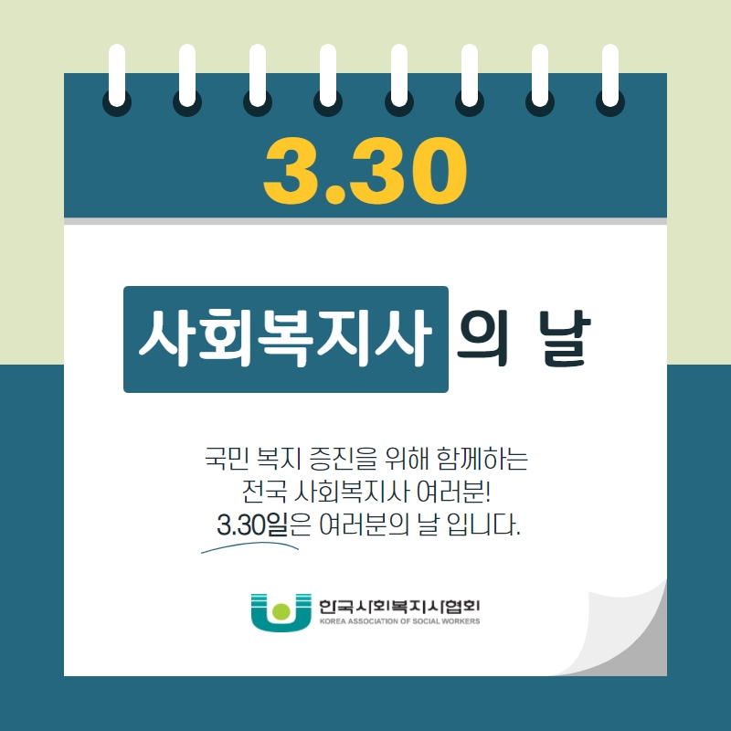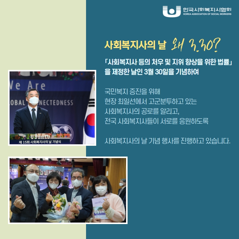 「사회복지사 등의 처우 및 지위 향상을 위한 법률」을 제정한 날인 3월 30일을 기념하여국민복지 증진을 위해