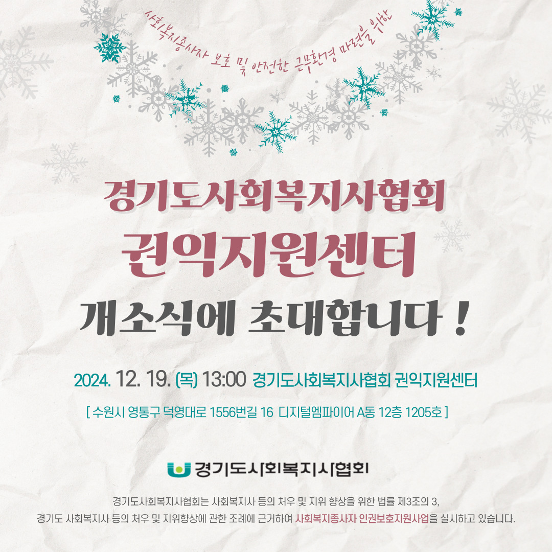 경기도사회복지사협회 권익지원센터 개소식 안내드립니다.