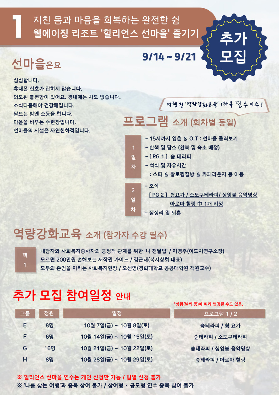 [2차 추가 신청] 2022년 경기도 사회복지종사자 역량강화 사업 - 힐리언스 선마을 참가 신청
