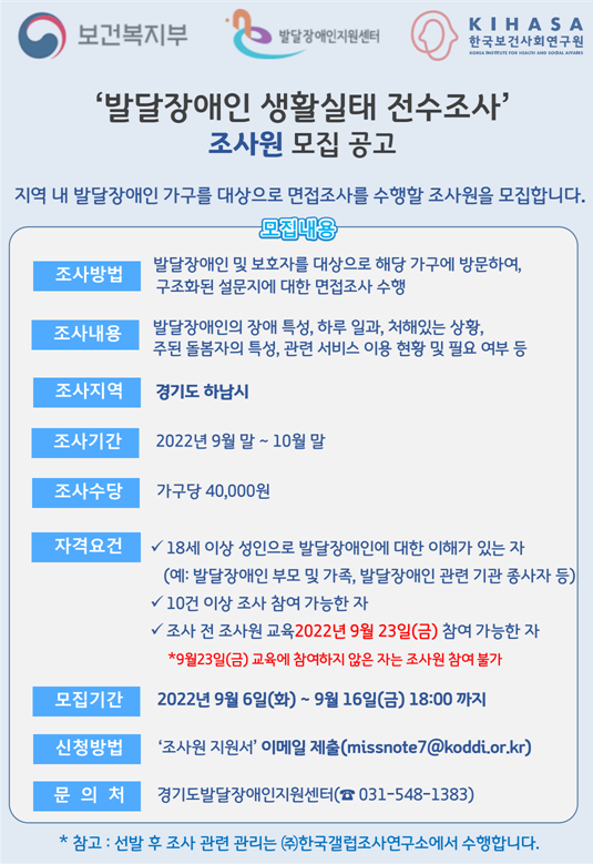 [홍보] \'발달장애인 생활실태 전수조사\' 조사원 모집