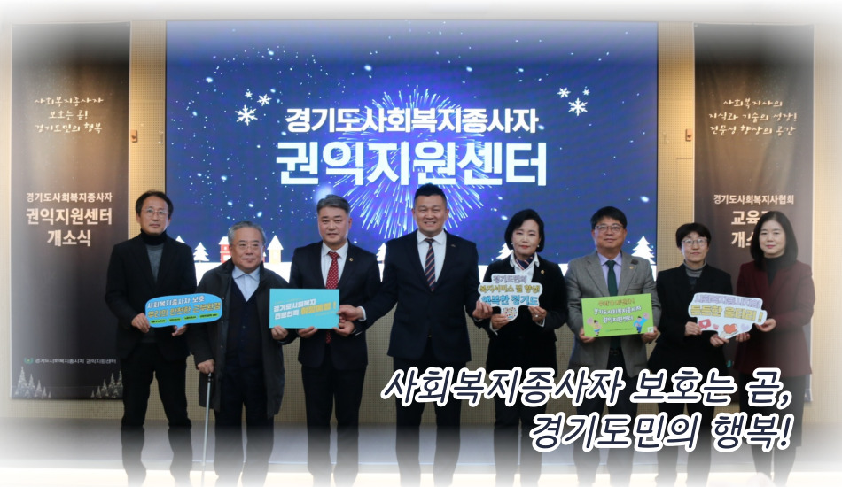 1226경기도사회복지사협회는 12월 19일 경기도사회복지종사자의 인권침해 예방과 권익 보호를 목적으로 설치한 권익지원센터를 개소했습니다.