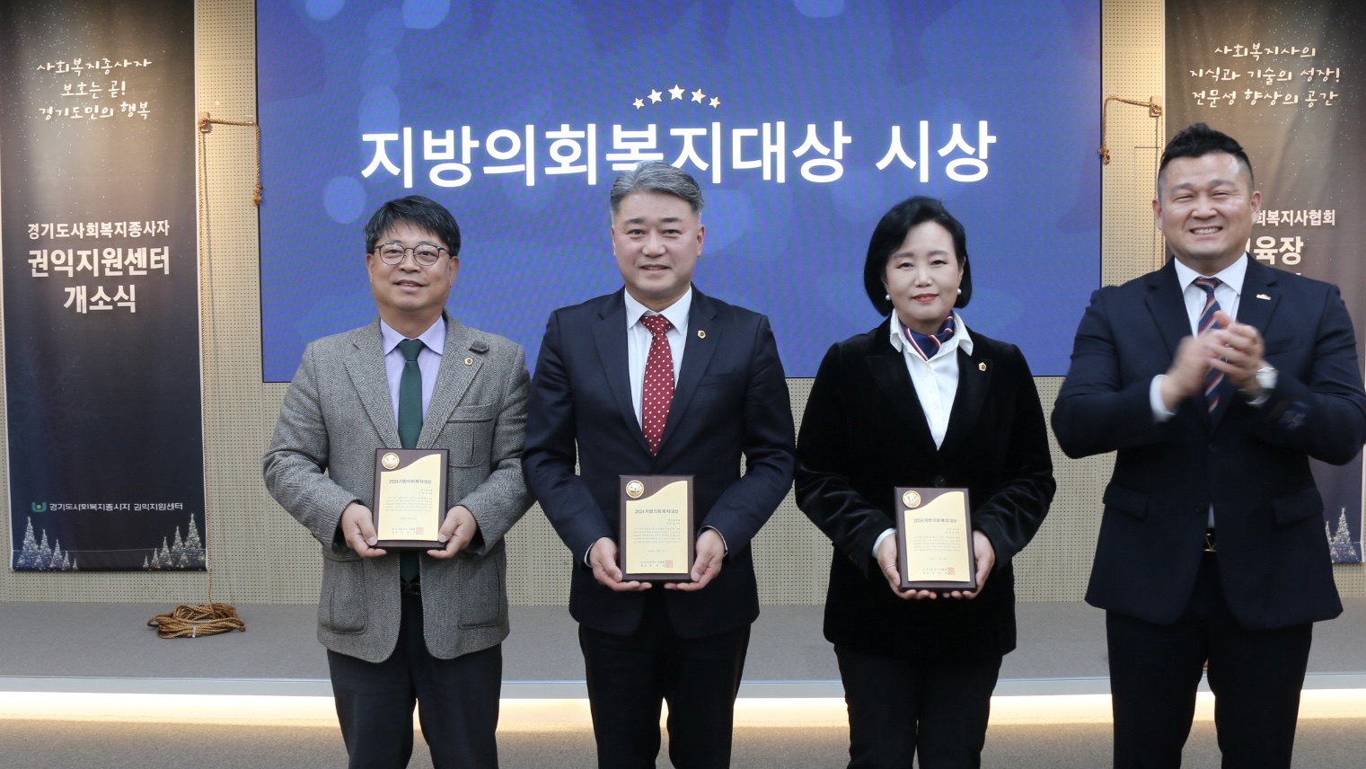 경기도의회 정윤경 부의장, 경기도의회 김정호 대표의원, 경기도의회 김재훈 의원이 공로를 인정받았습니다.