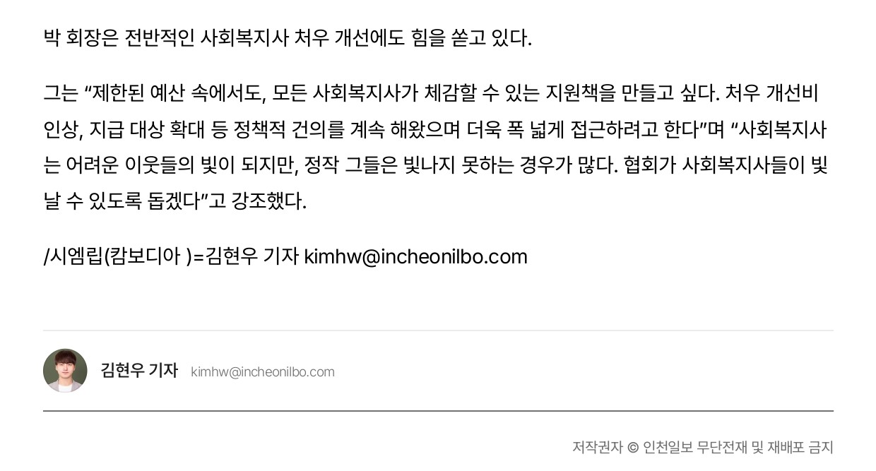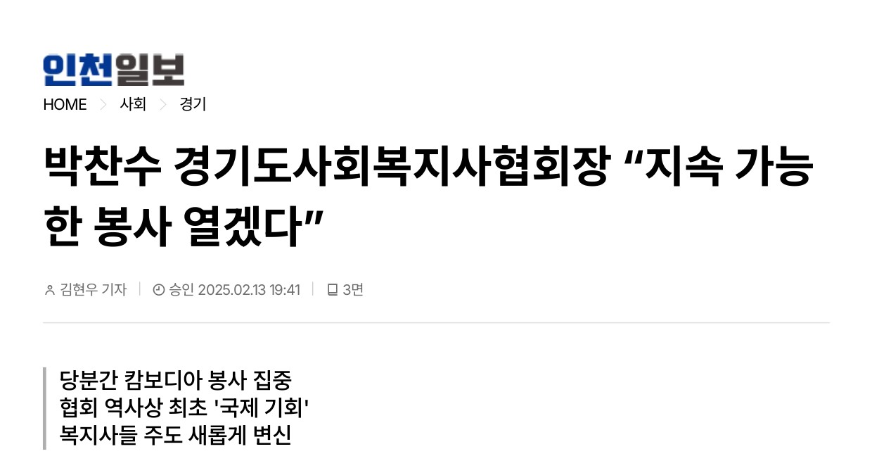 [2025.2.13. 인천일보] 박찬수 경기도사회복지사협회장 “지속 가능한 봉사 열겠다”