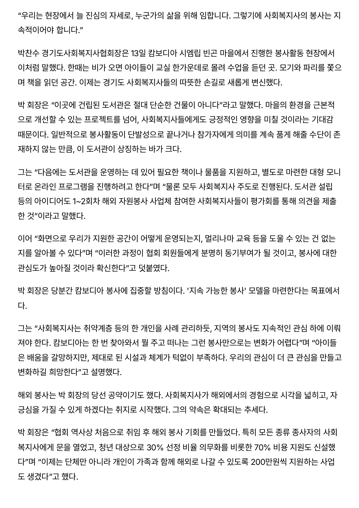 [2025.2.13. 인천일보] 캄보디아 빈곤 마을에 핀 '희망 도서관'