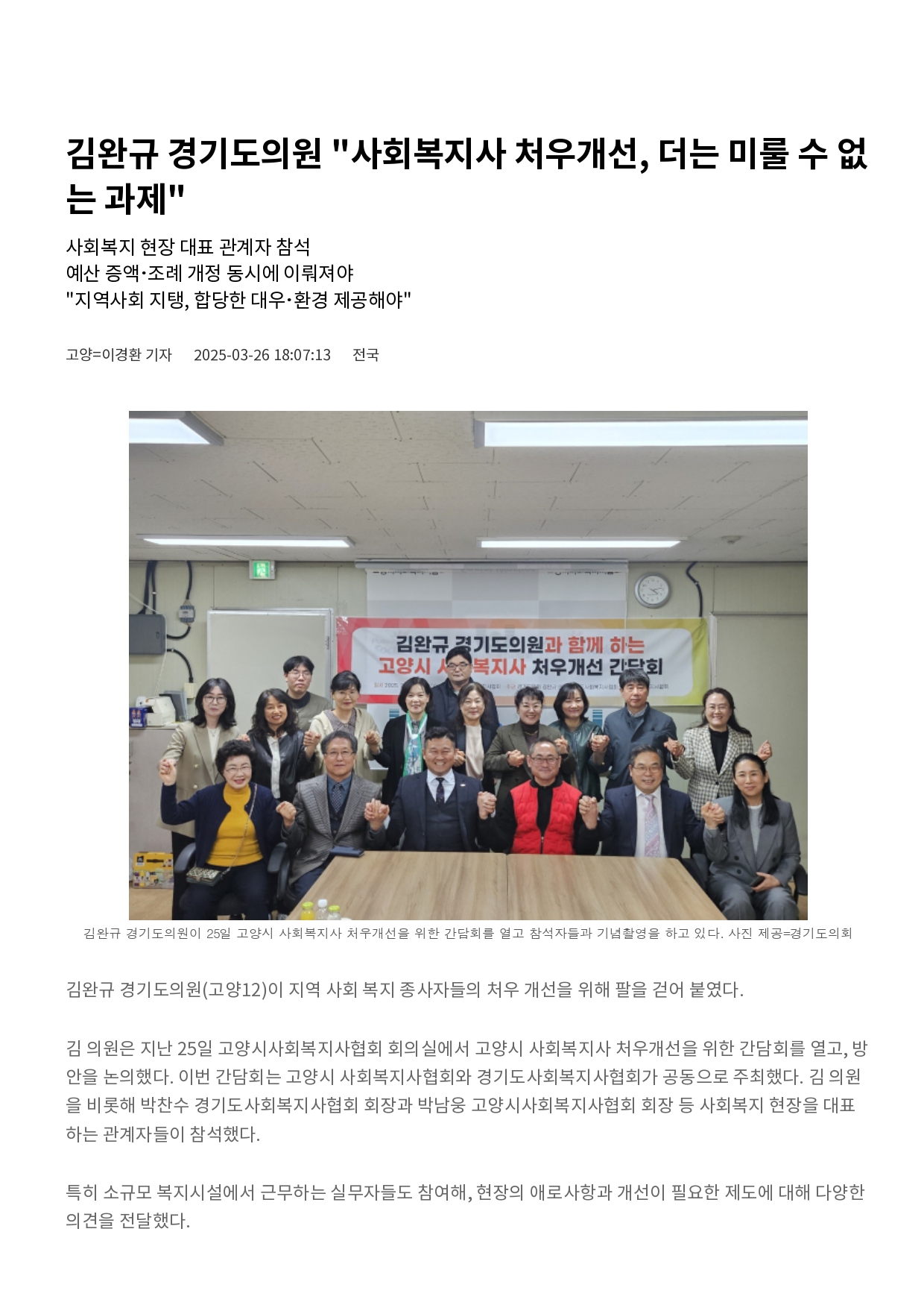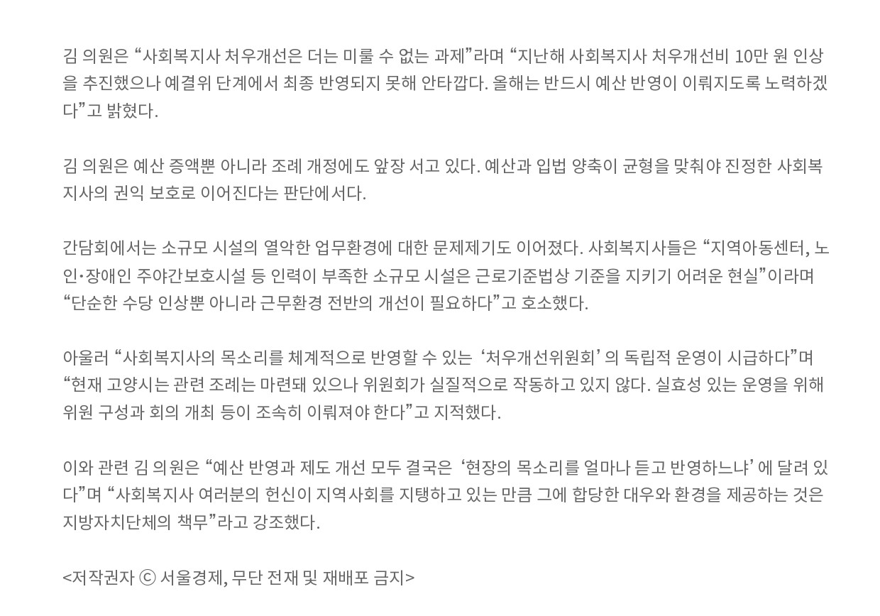 [2025.3.26. 서울경제] 김완규 경기도의원 사회복지사 처우개선, 더는 미룰 수 없는 과제