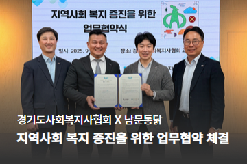 경기도사회복지사협회는 지난 9월 23일 수원 남문통닭과 업무협약을 체결하였습니다. 이번 협약은 지역사회의 복지 증진과 상생을 위해 두 기관이 긴밀히 협력하는 기반을 마련하는 중요한 의미를 갖고 있습니다. 남문통닭은 지역 내에서 오랜 역사와 신뢰를 쌓아온 업체로, 앞으로 경기도사회복지사협회와 힘을 합쳐 소외계층 지원, 복지사업 활성화 등에 기여할 계획입니다. 협회는 이번 협약을 통해 회원복지 증진 및 지역사회 연대 강화를 기대하며, 앞으로도 다양한 협력사업을 활발히 추진하겠습니다. 기사 바로가기 →https://www.joongboo.com/news/articleView.html?idxno=363704422