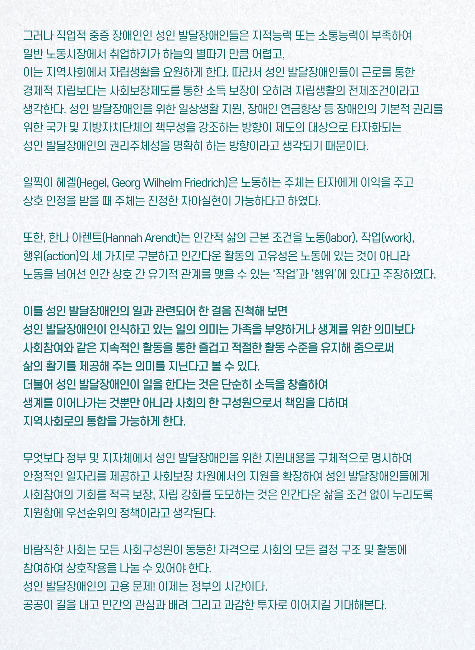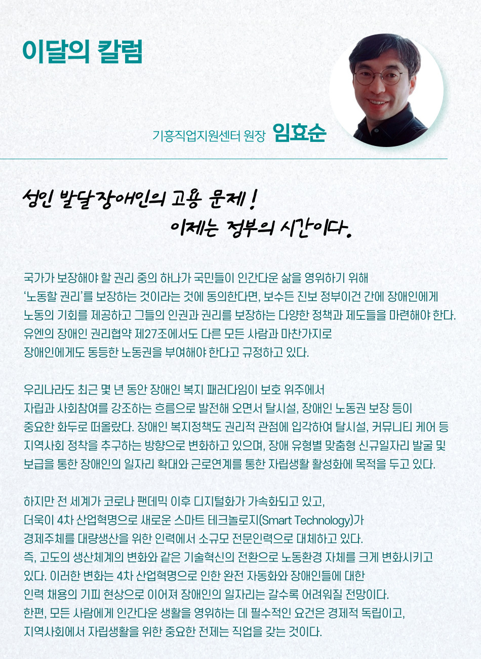 [제16호] 성인 발달장애인의 고용문제! 이제는 정부의 시간이다(임효순 기흥직업지원센터 원장)