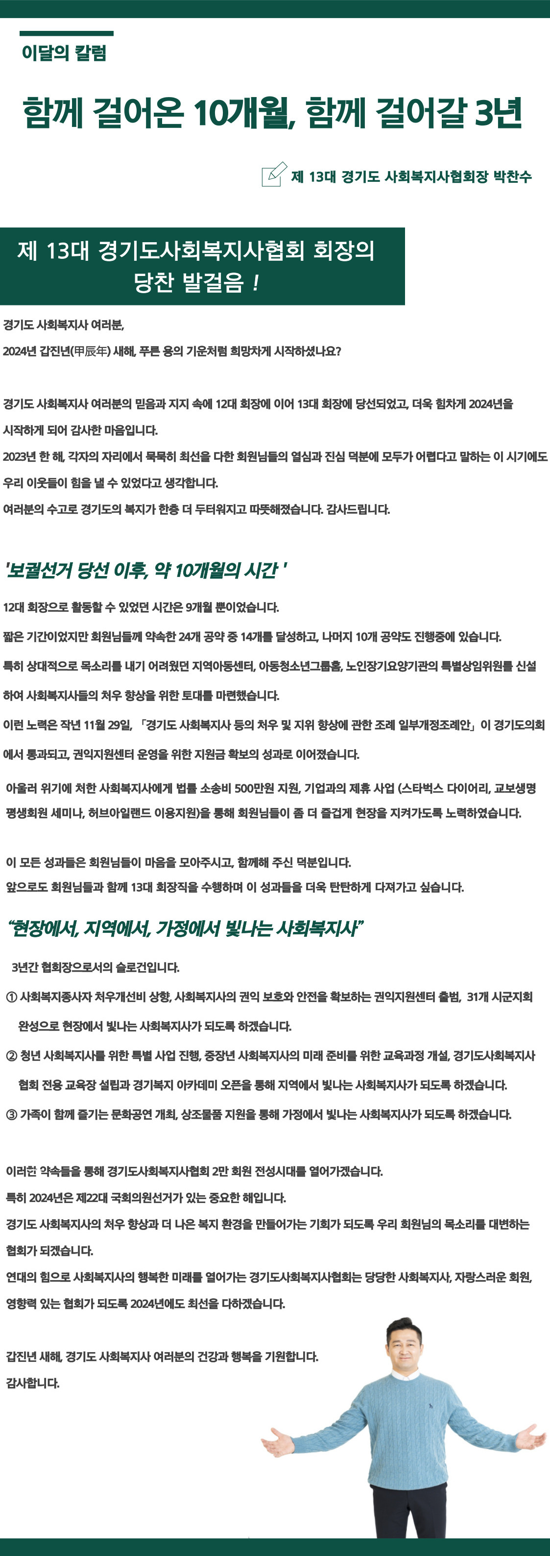[제20호] 함께 걸어온 10개월, 함께 걸어갈 3년 (경기도사회복지사협회 박찬수 회장)